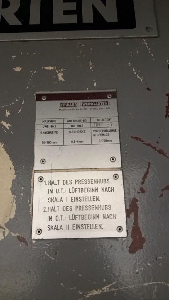 仕様 (EN) - アンコイラーストレートナー Muller Weingarten UWR 80 (ID: 76429)