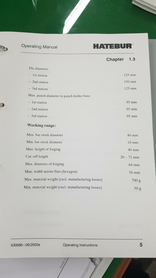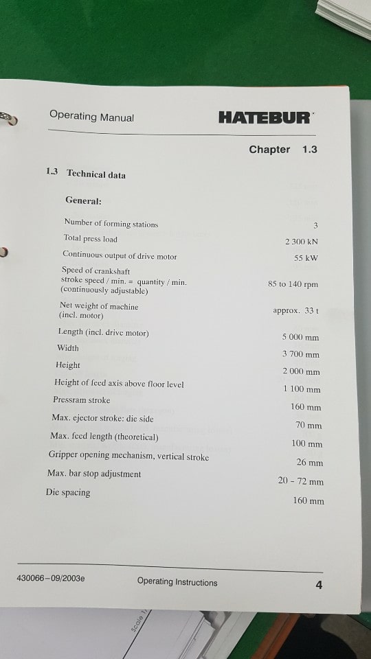 仕様 (EN) - 自動鍛造機 Hatebur AMP30 - 230 トン (ID: 75502)