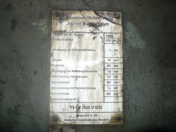 仕様 (EN) - 熱間鍛造プレス Erfurt PKXW 2500.1/1250 - 2500 トン (ID: S85907)