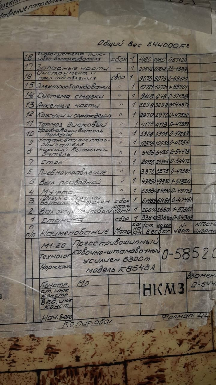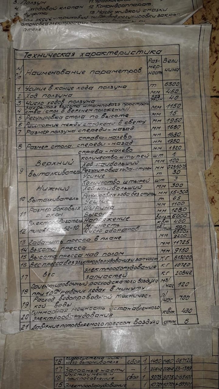 仕様 (EN) - 熱間鍛造プレス Kramatorsk K8548 - 6300 トン (ID: 75348)