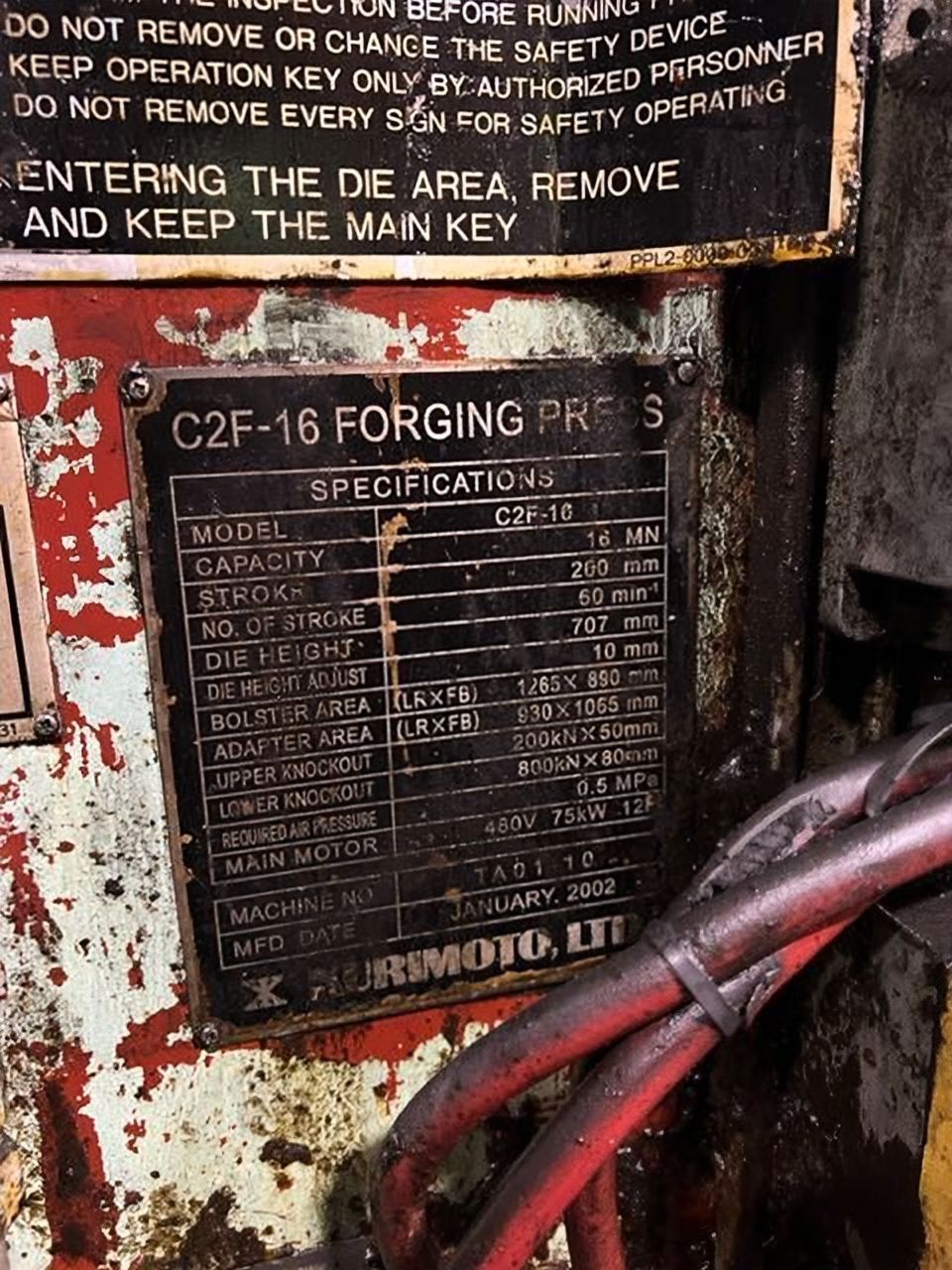 仕様 (EN) - 熱間鍛造プレス Kurimoto C2F-16 - 1600 (ID: 76039)