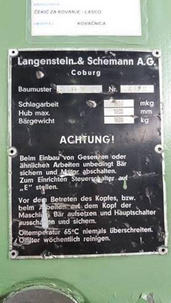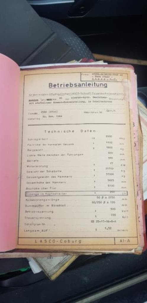 仕様 (EN) - 油圧鍛造ハンマー Lasco KH 160 - 1600 kgm (ID: 75672)