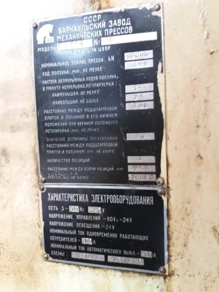 仕様 (EN) - 冷間押出プレス Barnaul K8240 - 1000 トン (ID: 75745)