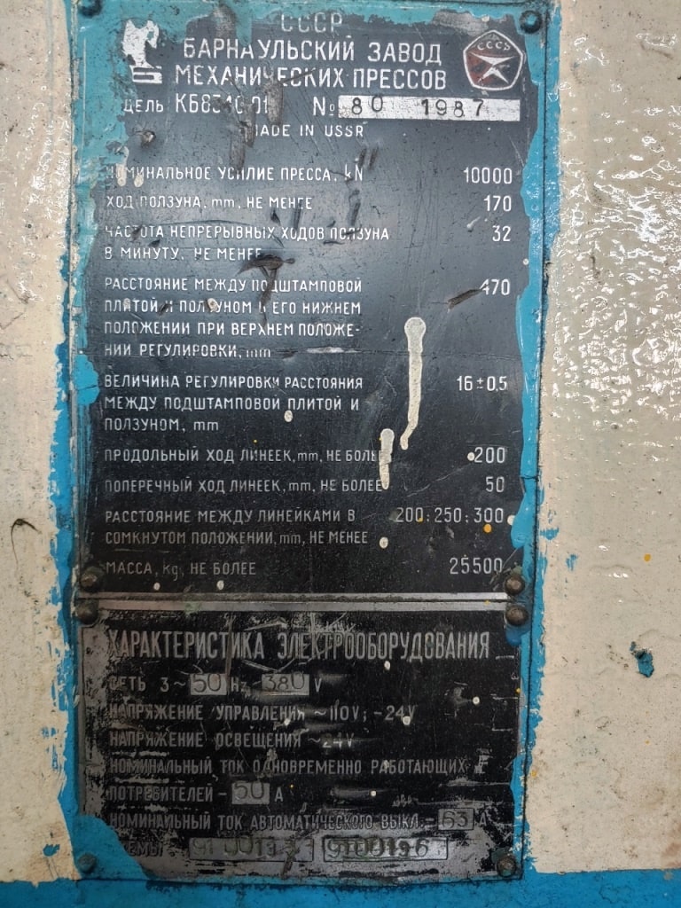 仕様 (EN) - ナックルジョイントプレス Barnaul KB8340 - 1000 トン (ID: 75896)