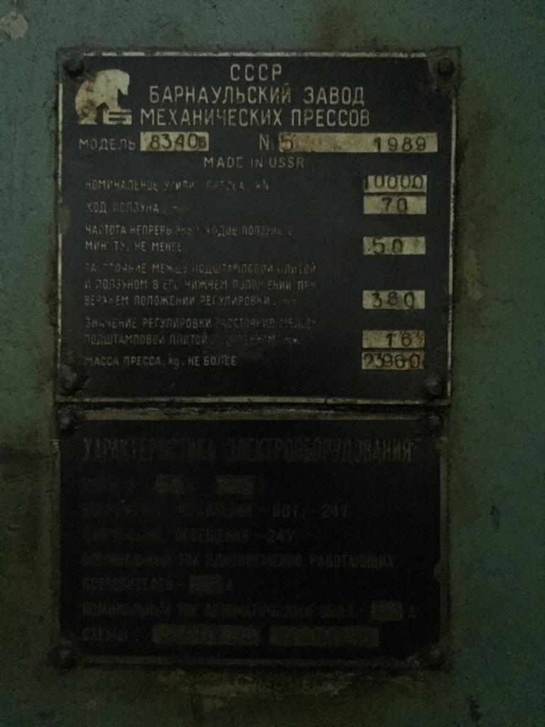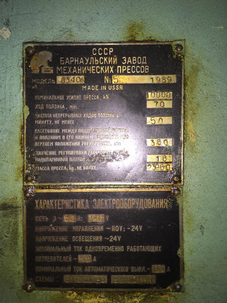 仕様 (EN) - ナックルジョイントプレス Barnaul KB8340 B - 1000 トン (ID: 75758)