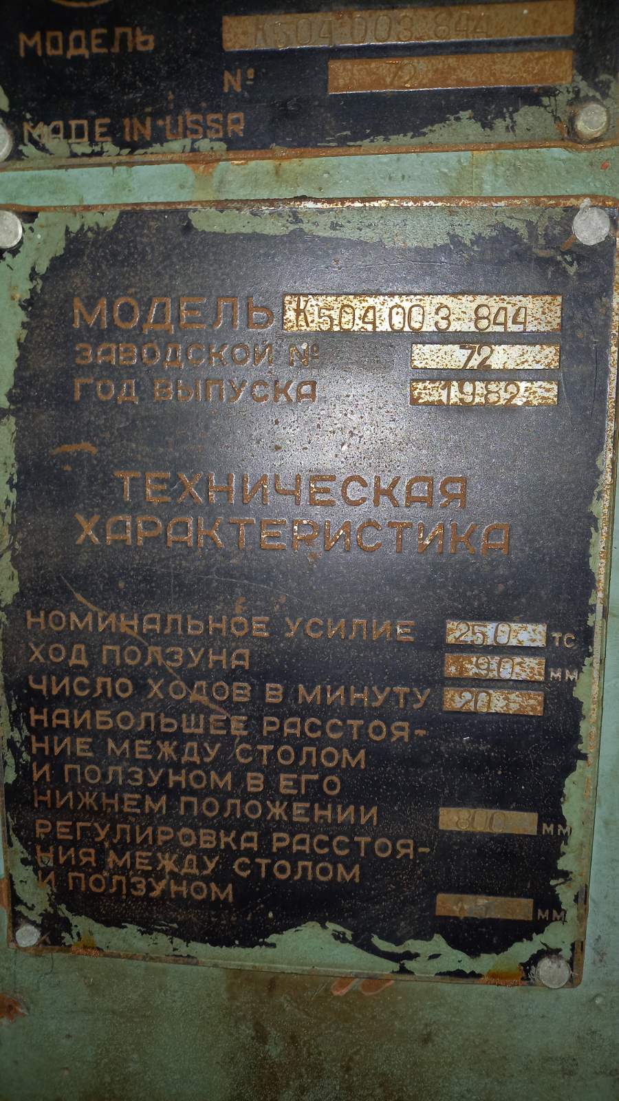 仕様 (EN) - ナックルジョイントプレス TMP Voronezh K504.003.844 - 2500 トン (ID: 75820)
